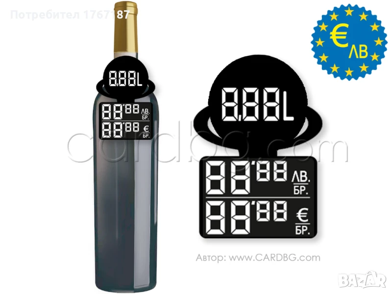 Етикети за цени в Евро и лева двуредови картон, лепенка, за бутилки → Обява 50957771
