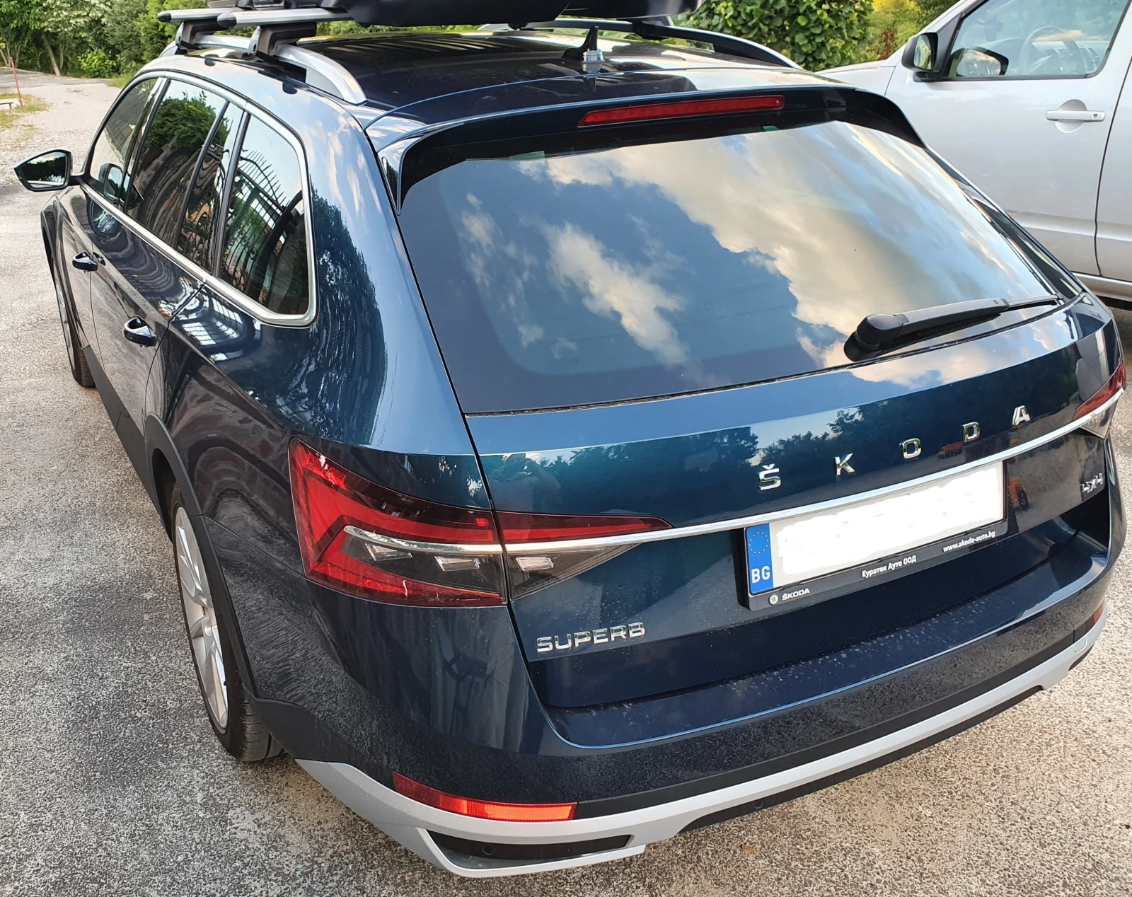 Намалена Цена до 16 Февруари! ! ! 4x4 Skoda Superb Scout 4x4 Отлично поддържан и сервизиран, личен автомобил Шкода Супърб Комби Скаут в Гаранция! Подновена застраховка и каско от 13. 04. 2025г. Бензинов двигател TSI / 206 kW / 280к. c. , 7DSG, 4х4, EU6 Среден разход на гориво: 7, 1 l/ 100 km Емисии CO2: 165 g/1 km Стандартно оборудване на ШКОДА СУПЪРБ СТАЙЛ: Безопасност, функционалност, комфорт: Matrix-LED адаптивни фарове с LED дневни светлини и пръскачки Фарове за мъгла с функция CORNER Електрическа седалка за водача с памет Амбиентно интериорно осветление с възможност за смяна на 8 бр. цвята Механични щори за задно и задни странични стъкла Сенници с огледала и LED осветление Бордкомпютър с цветен Maxi-DOT дисплей Мултифункционална камера за заден ход Двузонов климатроник с електронно регулиране на температурата Радиоапарат Bolero с 8, 0" цветен тъч-скрийн дисплей, с аудиобукса, с USB вход, със слот за SD карта, възможност за свързване на Apple, с гласов контрол и SmartLink Кутия за багаж с капак в багажното отделение Ахроматични огладала за обратно виждане KESSY - безключово отключаване и заключване на автомобила, и безключово палене и гасене на двигателя Подгряване на предните седалки Управление на радиото и телефона от волана Универсална Bluetooth подготовка за GSM Изход 220V и USB на гърба на предния подлакътник Обезопасителни светлини в панелите на предните врати Две отделения за чадър в предните врати, вкл. два чадъра Подлъкътник за пътуващите отзад Airbag за водача и пътника до него Странични въздушни възглавници за водача и пътника до него Въздушни възглавници - завеси за всички пътници Start-Stop система система за рекуперация на спирачната енергия Темпомат и ограничител на скоростта Фарове за мъгла ESC включващо ABS, ЕBV, MSR, ASR, EDS, HDA, DSR, RBS, CBC и XDS+ MKB - мултиколизионна спирачка HHC - система прогив потегляне по наклон TPM - система за следене на налягането в гумите Тонирани стъкла с UV филтър Сензор за дъжд вграден в ахроматично огледало за обратно виждане Оборотомер с дигитален часовник Бордкомпютър с Maxi-DOT дисплей Управление на радиото от волана Електрически странични огледала с подгряване и вградени мигачи Light Assistant с функции Day light, Coming home и Tunel light Дневни светлини с възможност за дективация Електромеханична паркинг спирачка Предни седалки с регулиране по височина и лумбални опори Регулиране на височината на фаровете от мястото на водача Екстериор: Лети джанти STRATOS 7Jx17" с гуми 215/55 R17 Автоматично сгъващи се странични огледала Хромирана рамка на радиаторната решетка Хромирани рамки на страничните стъкла LED задни светлини Декоративно-защитни лайсни на вратите Радиаторна решетка с черен дизайн Интериор Тапицерия - текстил Осветление в краката на пътуващите отпред и отзад LED пакет включващ лампи за четене, осветление в краката на пътниците отпред и отзад, огледала в сенниците и др. Декоративни прагове на всички врати Пакет за пушачи с подвижен пепелник Сенници с огледала и LED осветление Малък кожен пакет с 2 спицов мултифункционален волан Управление на радиото и телефона от волана Кожени ръкохватки на лоста за скоростите и ръчната спирачка Кутия за вещи под пътническата седалка Декоративни прагове на предните врати Комплект текстилни стелки Държач за слънчеви очила Делима облегалка на задната седалка (60: 40) и падаща облегалка Подлакътник отпред и Jumbo Box кутия между предните седалки Допълнително оборудване: Лава Син Метали