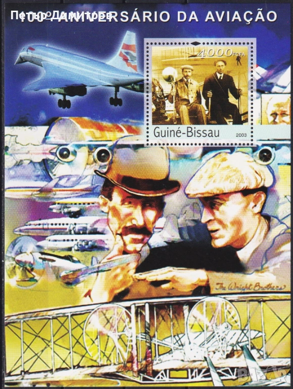 3. Чист блок 100 години Авиация Самолети 2003 от Гвинея Бисау. Цена € 8,00 (сн. 3)