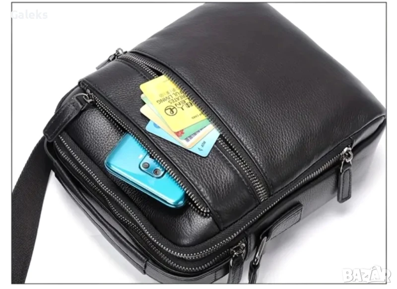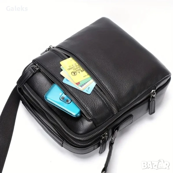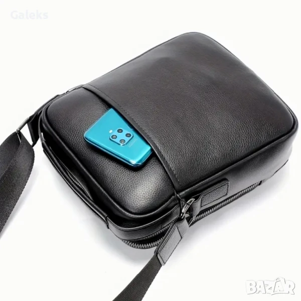 мъжка кожена чанта с аристократична визия в черен цвят.