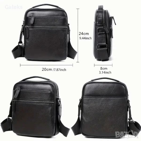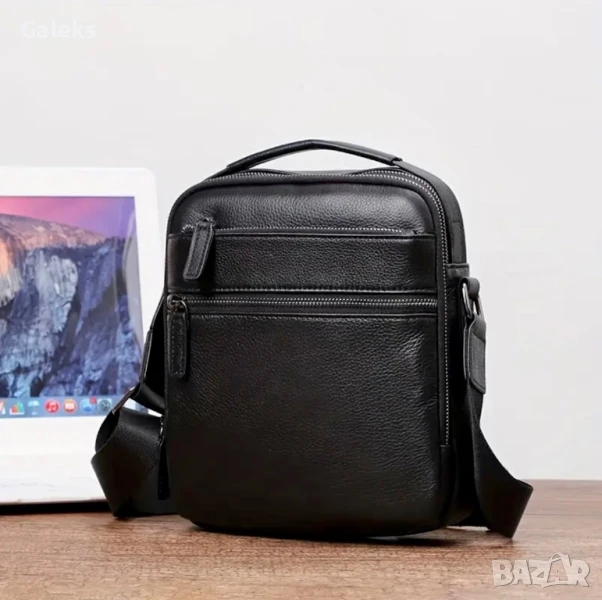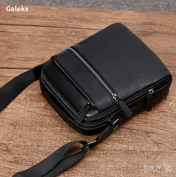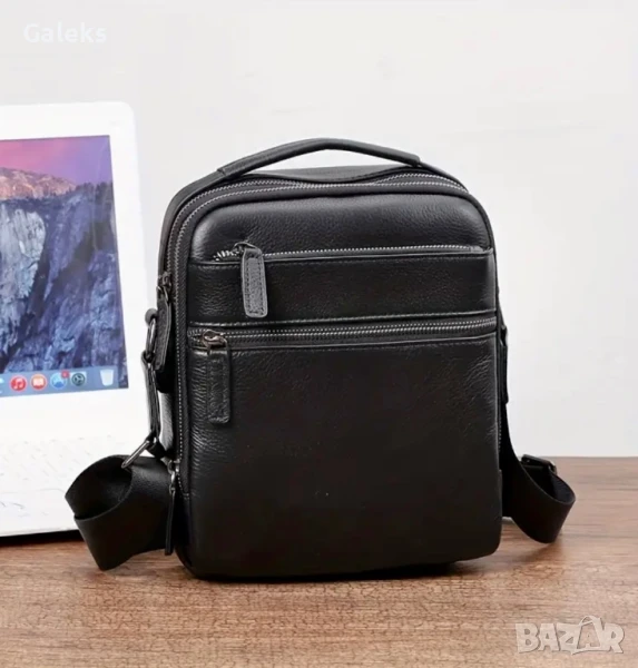 Мъжка луксозна и елегантна бутикова кожена чанта /Черна естест. кожа!