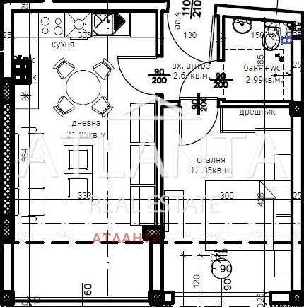 Просторна дневна с кухня и трапезария