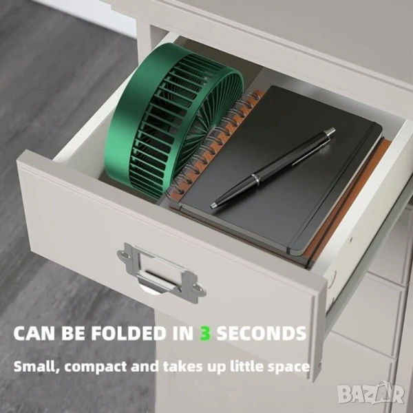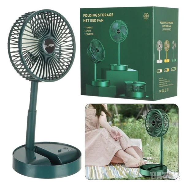 Този компактен и сгъваем USB вентилатор е идеалното решение за прохлада у дома, в офиса или по време на пътуване. Благодарение на вградената акумулаторна батерия и възможността за зареждане чрез USB, ще се радвате на свеж въздух навсякъде и по всяко време – без нужда от кабели или мрежово захранване.