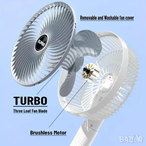 Многофункционален настолен вентилатор – стоящ, закачен, с щипка, ръчен / сивобял – презареждащ се