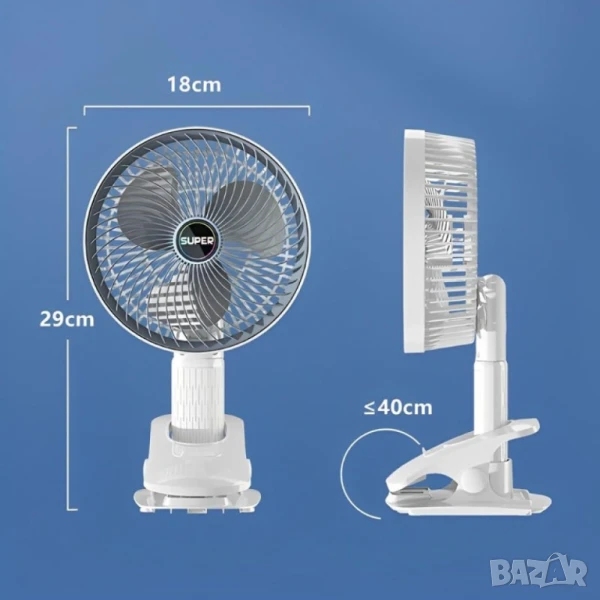 Този компактен вентилатор със щипка е снабден със здрава захващаща основа и е изработен от висококачествени материали. Лесно може да бъде поставен в ъгъла на бюро, до бягаща пътека, прикрепен към леглото или навсякъде, където искате силен въздушен поток.