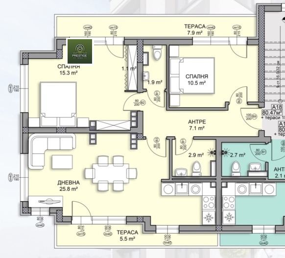 Обща площ 107 кв.м и ДОПЪЛНИТЕЛНИ 15,47 кв.м ТЕРАСИ!