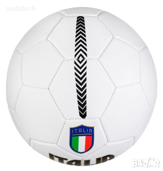 Официален размер топка № 5, Италия в бяло с черни шарки и знамето на Италия за големи мачове. Технологията на производство гарантира много часове игра, запазване на въздуха и закръгленост по време на употреба.