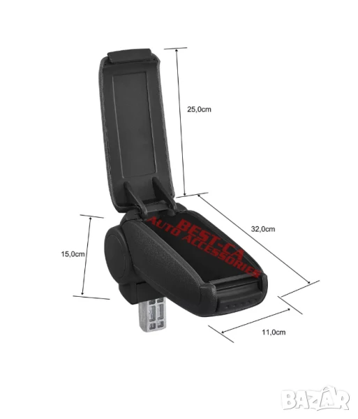 Монтира се в отделението за съхранение зад ръчната спирачка.