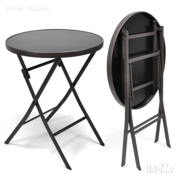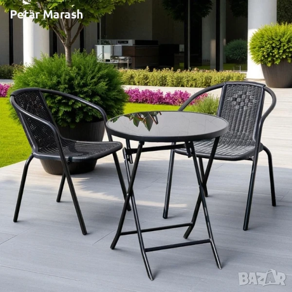 ✅ Комплект: 2 стола + сгъваема маса с Ø60 см стъклен плот
