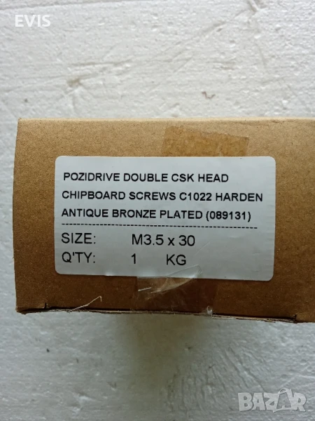 Продавам винтове за дърво с размери 3.5x30 мм, бронзирани – освен защита от корозия, покритието придава ефект на състарен, ретро стил (античен вид).
