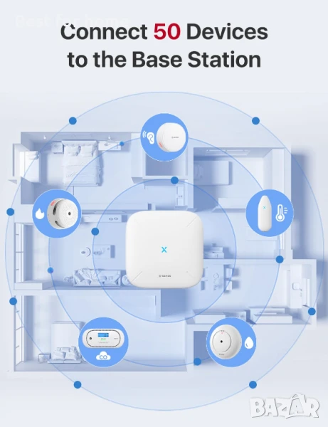 Свържете 50 устройства към базовата станция: Поддържа слушател SAL51, димна аларма XS01-M, CO аларма XC01-M, сензор за теч на вода SWS51 и термо-хигрометър STH51; персонализирайте мрежата си, за да наблюдавате безопасността на дома си по всяко време и навсякъде.