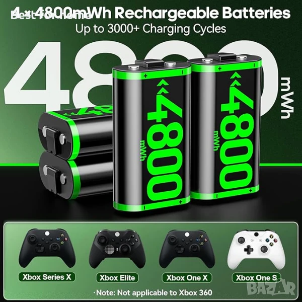 4 X 4800MWH ПАКЕТ ЗА ПРЕЗАРЕЖДАЕМИ БАТЕРИИ ЗА XBOX: Този комплект аксесоари за Xbox се предлага с четири акумулаторни батерии с висок капацитет и елегантна станция за зареждане, която работи с контролери Xbox Series X|S/Xbox One/Xbox One S/Xbox One X/Elite/Core, така че можете да се потопите в продължителни игрови сесии, без да се притеснявате за смяна на батериите. Батерията на контролера от серията Xbox може да се рециклира до 3000 пъти, което може да ви спести много пари и да опазва околната среда, а също така е чудесен заместител на постоянното закупуване на AA батерии.