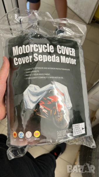 - Предпазва мотоциклета от: слънце, вятър, дъжд, мъгла, птици, сняг и е подходящ за целогодишно използване.