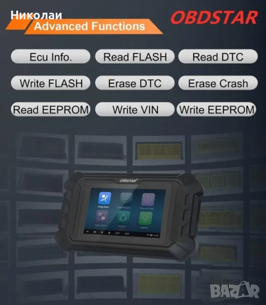 Четене на информация за ECU: Четене на номера на частта на ECU, историческия номер на рамата, текущия номер на рамата, запис на сблъсък.