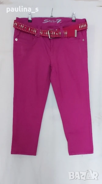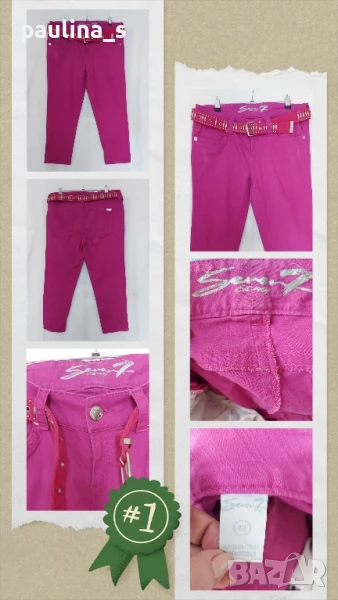 2️⃣. Колаж / XL / 2XL - Маркови еластични бермуди "Seven7". Цената е крайна 49,99лв / 25 евро. Дамски дънкови бермуди, еластични, много екзотичен цвят Циклама. Моделът е 5 pocket Denim low waist. Крачолите са прави, имат накъсан ефект, брандирани копче и кабси, кожена емблема. Като нови, една бройка, без дефекти и етикет. Коланът е моя хрумка, продава се за 29,99лв / 15 евро.