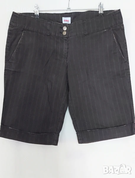 4️⃣. Колаж / L / 2XL - "United colours of the world". Цената е крайна 29,99лв / 15 евро. ВИНТИДЖ 2002г. Кафяви дънкови бермуди на дискретни вертикални райета, с разкъсани краища, без гайки. Джобовете са коси, крачолите с подгънати маншети, талията е ниска. Без дефекти и етикет, като нови.