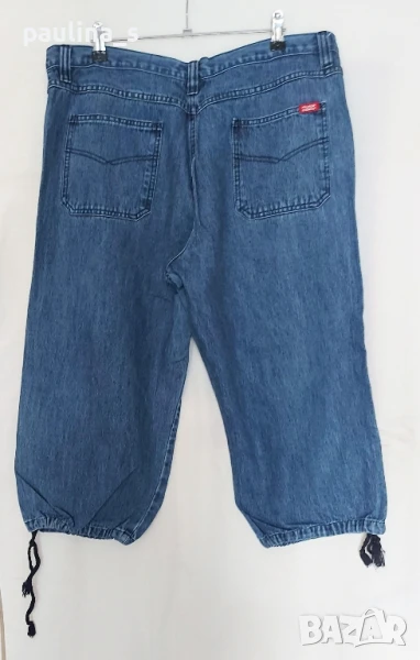 шалвари, с широки крачоли и шнур, стават на шалвари. Моделът е с нормална талия, 5 pocket Denim. Платът е без еластичност, здрав и плътен Деним. Класика в жанра, като нови, без дефекти и етикет.