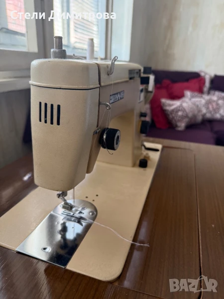 В чудесно състояние,с педал,работеща,запазена,намира се в гр.Пловдив,продава се с целия шкаф.До последно се ползваше от моята баба,която я пазеше много.