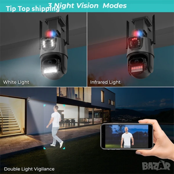 📷 6MPX Двойна външна/вътрешна WiFi PTZ камера BESDER💰 Цена: 65 лвИдеална за наблюдение на дома, офиса, гаража или вилата – ден и нощ!✅ 6MP (3MP+3MP) двойна камера с два обектива – заснема по-широк ъгъл и повече детайли✅ Цветно нощно виждане до 25 м✅ Автоматично проследяване на хора с AI Human Detect – аларма и известие на телефона✅ 270° хоризонтално / 90° вертикално завъртане – дистанционно управление през ICSEE✅ Двупосочно аудио – говорете в реално време✅ Водоустойчива IP66 – подходяща за външен монтаж✅ WiFi 2.4GHz и LAN връзка, слот за TF карта до 128 GB, съхранение и в облак✅ Съвместима с Android, iOS, Windows, Mac✅ Работи с H.265 компресия – спестява място и трафик📦 Комплектът включва:1x PTZ камера1x Захранване1x Комплект винтове1x Инструкция🚚 Изпращам с Еконт с преглед и тест!