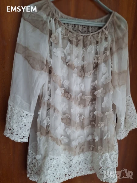 Дамска блуза , апликация цветя и дантела , 7/ 8 ръкав , с подплата