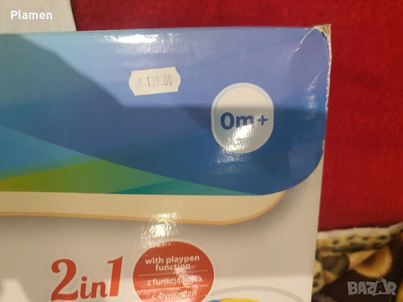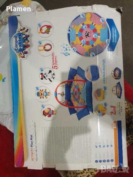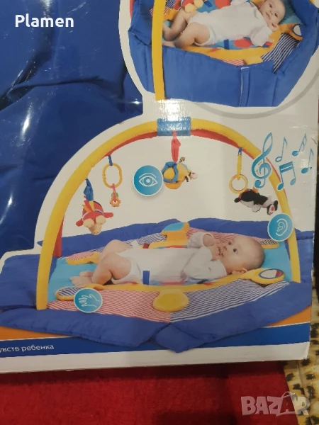 Ползвано двапати с кутия няма забелешки липсват висящите играчки може да се закачът нови !