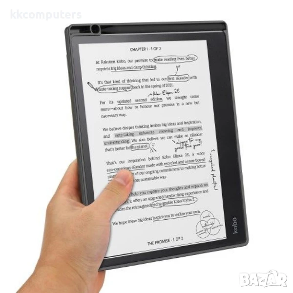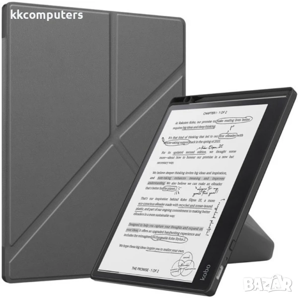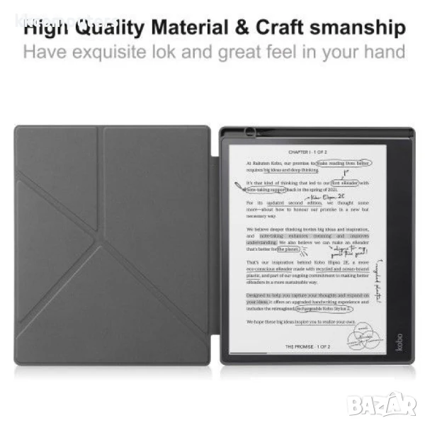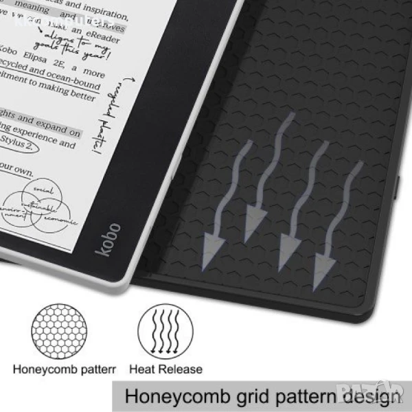 Приляга идеално към четеца Защитава гърба, дисплея и в същото време има приятен и класически дизайн - тип книга. Не увеличава размера на Вашия Kobo Elipsa 2E съществено.
