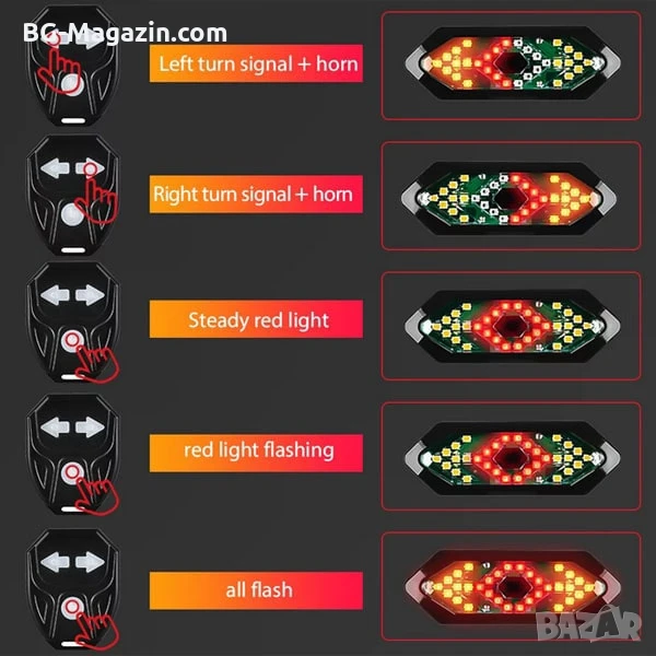 – Безжично дистанционно управление: Лесно превключване между режимите на светене и активиране на мигачите с помощта на дистанционното управление на кормилото.