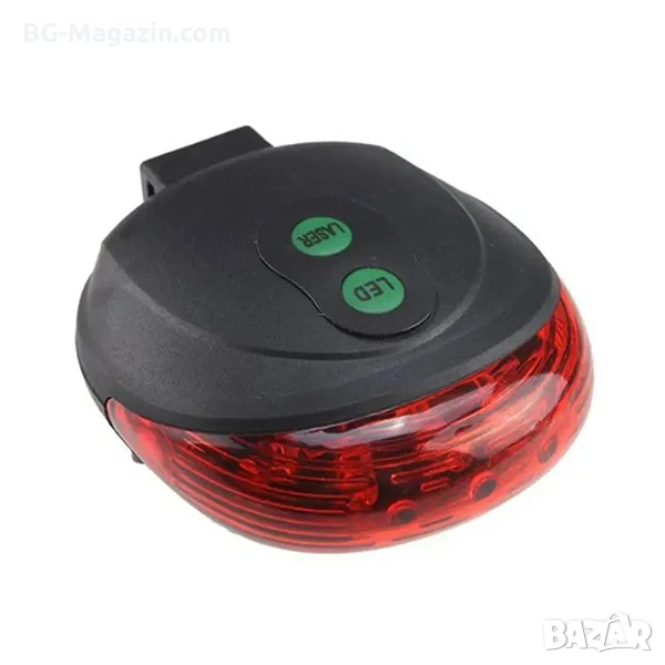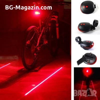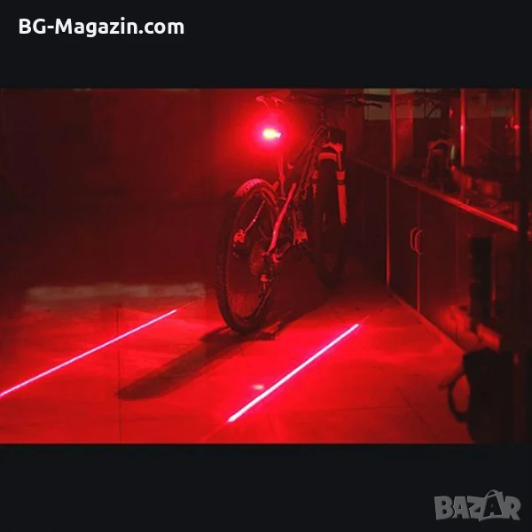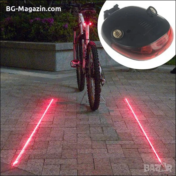 – Лазерно очертаване на пътя: 2-та лазера създават две успоредни линии около велосипеда, което допълнително увеличава вашата видимост и предупреждава водачите на автомобили за вашето присъствие.