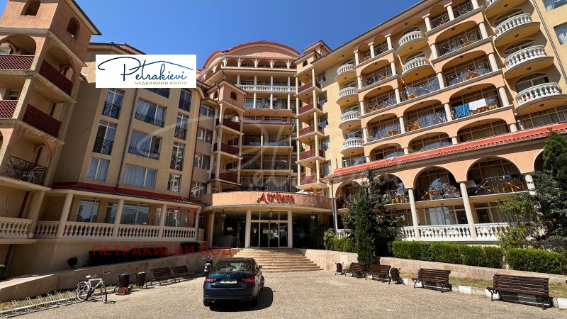 Петракиеви недвижими имоти представя двустаен апартамент на брега на морето, със странична морска гледка в най слънчевия курорт по нашето Черноморие, Елените. Разположен в елитния комплекс Атриум Бийч на първа линия море, само на 10 метра от плажа. С една от най- удобните и добри позиции в курорта, в непосредствена близост до Амфитеатъра, Аквапарка, входа на ваканционното селище и паркинга. С уникална локация между планина и море, живописен район със спиращи дъха панорамни гледки, природа, зеленина, чист въздух, многобройни възможности за дълги разходки, спорт и отдих. Огромната затворена територия за външни посетители, което е и едно от най- големите му предимства правят имота привлекателен за семеен отдих.