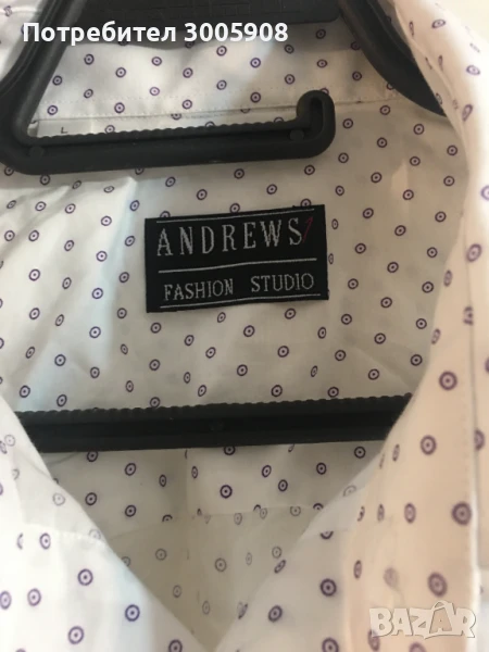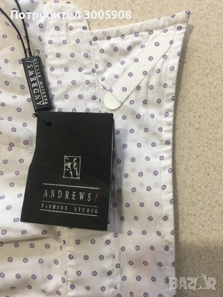 ризи са бели, но с различни по цвят десени- малки кръгчета златни или лилави.