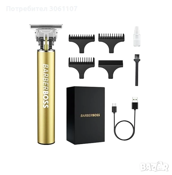 Професионален тример за коса и брада. Комплектът включва: безжичен тример с Т-образно острие, 3 прецизни направляващи гребена, USB кабел за зареждане и четка за почистване. Постигнете желаната прическа безпроблемно, независимо дали сте у дома или в движение.