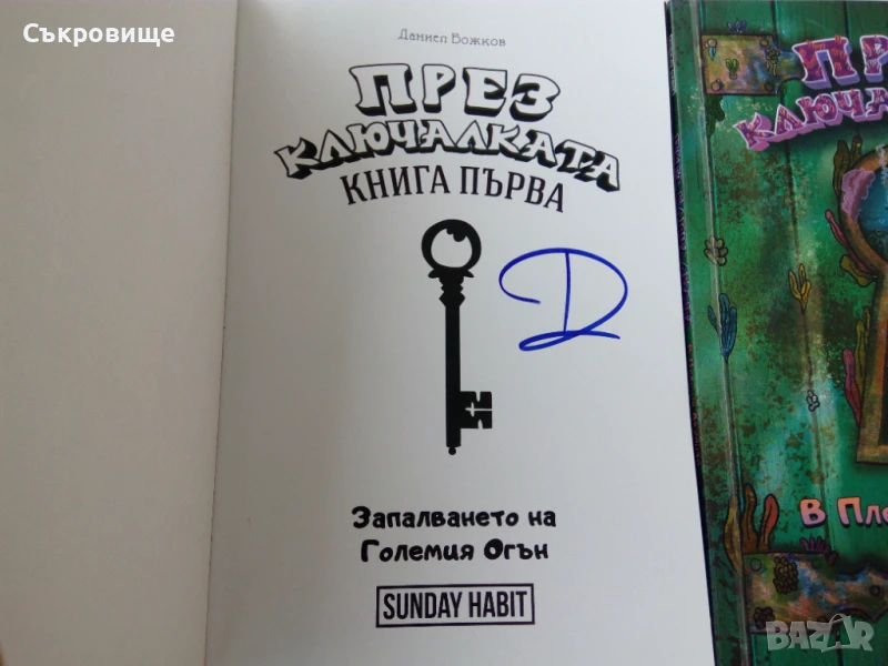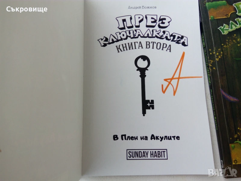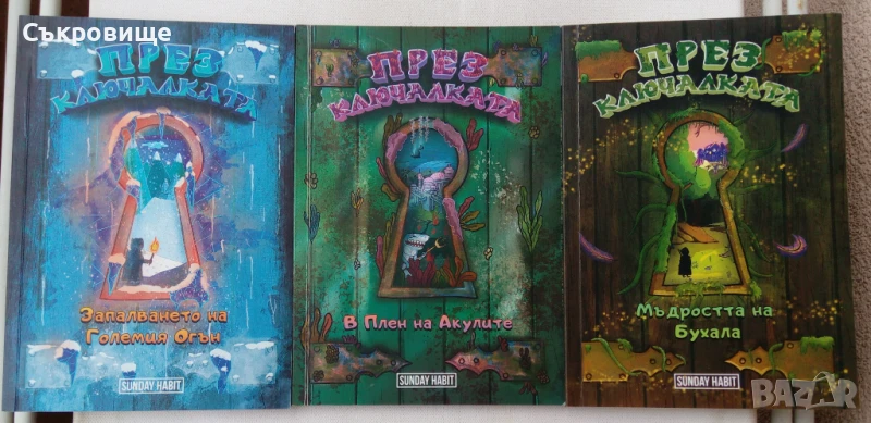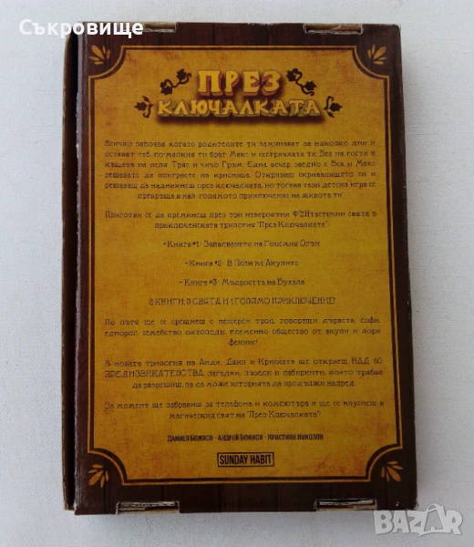 Комплект "През ключалката" - Sunday Habit - Даниел Божков, Андрей Божков, Кристиян Николов - Три книги в колекционерска кутия, с автографи от авторите, картичка с авторите и автографи, картонен ключ. На места има попълвано. Детски книги са, но в някои има елементи на книга-игра. Обща цена за всичко: 60лв