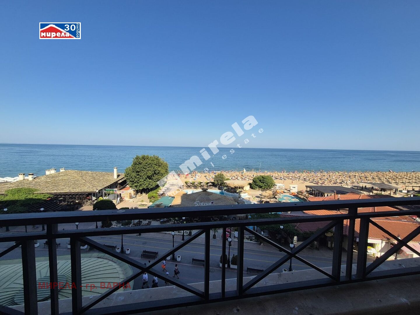 453143 Агенция Мирела прoдава изключително атрактивен тристаен апартамент с морска панорама, разположен на първа линия в курортен комплекс Златни пясъци.