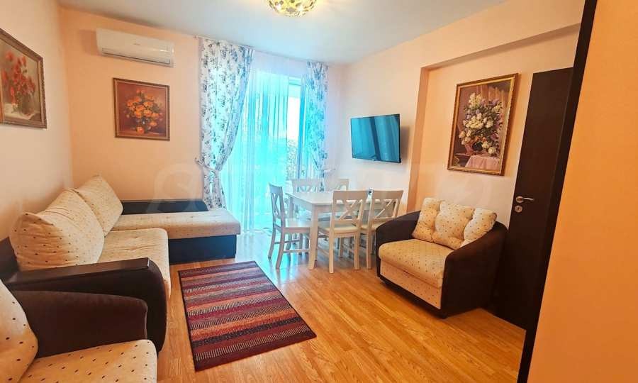 Представяме уютен, напълно обзаведен двустаен апартамент, част от елегантен затворен комплекс с множество екстри, разположен сред зеленината на еко-района близо до Слънчев бряг, в село Кошарица. Намира се само на 10 минути с кола от плажовете на Слънчев бряг.