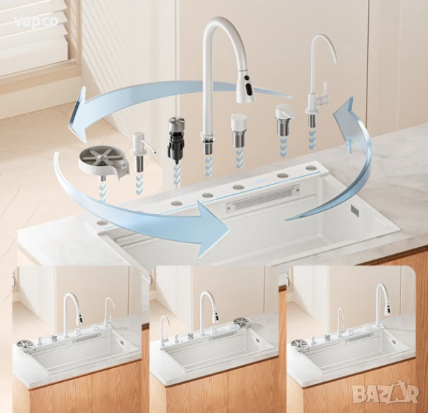 *** Предлагаме и филтърни системи за вода, както и мелници за хранителни отпадъци съвместими с мивката.