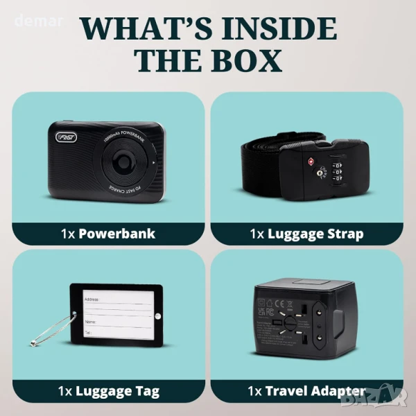 Този първокласен подаръчен комплект се отличава с елегантно анодизирано черно покритие и включва глобално съвместим адаптер за пътуване, използваем в над 150 държави, бързозареждаща се външна батерия с USB-C и два USB-A порта за множество устройства, одобрена от TSA регулируема презрамка за багаж с вградена ключалка за сигурно пътуване и етикет за багаж. Безжична външна батерия MagSafe с капацитет 10 000 mAh за удобно зареждане без кабел, което я прави стилен и практичен избор за пътуване и специални поводи.