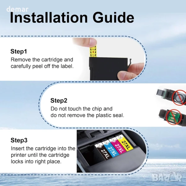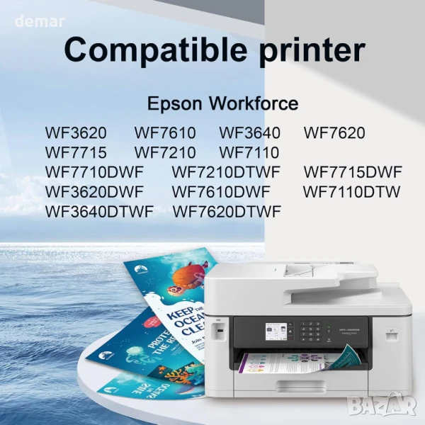 Съвместим с гама принтери Epson WorkForce (WF-3620DWF, WF-3640DTWF, WF-7110DTW, WF-7210DTW, WF-7610DWF, WF-7620DTWF, WF-7710DWF, WF-7715DWF, WF-7720DTWF), този мултипак включва 9 черни и 9 цветни касети 27XL (циан, магента, жълто), предлагащи висок капацитет на отпечатване – до 2200 страници за черно и 1100 за цвят. С актуализирани чипове за надеждно разпознаване и безпроблемна съвместимост с принтерите, касетите осигуряват ярки, естествено качество на отпечатаните страници, подходящи както за ежедневна, така и за офис употреба.