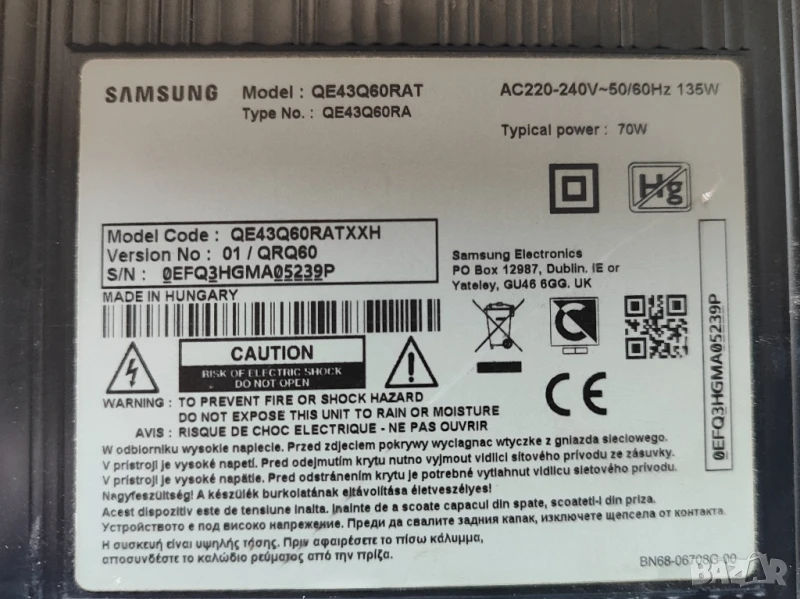 Main board BN94-14136D от телевизор QLED Samsung 43" инча QE43Q60RAT със счупена матрица! Борда е тестван и ПЕРФЕКТНО работещ от малко употребяван телевизор! - 100лв.