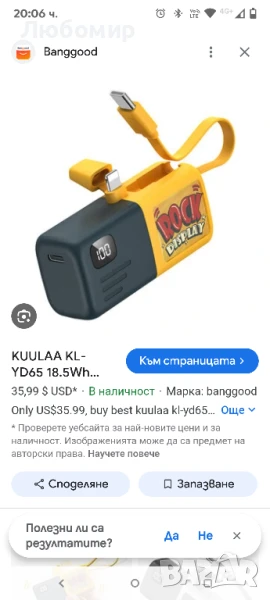 Kuulaa Powerbank USB C 5000 mAh, Външна батерия за мобилен телефон PD 15 W с LED дигитален дисплей, Преносима и компактна малка Power Bank, съвместима с Android Type C (жълта.Широка съвместимост: Съвместим с iPhone 15-6/Plus/SE, както и с AirPods и AirPods Pro и др. Широко съвместим с повечето телефони с USB C порт, като Samsung, Huawei, LG, HTC, Moto, OnePlus, Google Pixel, Xiaomi, OPPO, VIVO, TCL и други телефони тип C. Модели като S22/S21/S20/S10/S9/Note20/Note 9, S9 Plus, S9, Note 8, Galaxy Z Flip 3, Galaxy Fold, Galaxy Fold, Huawei P40, Mate 40, серия 30, LG G7, V40, V305 ThinQ, G8, G6, Q6, OnePlus 9, 9 Pro, Google Pixel 5A, 6 Pro и др.