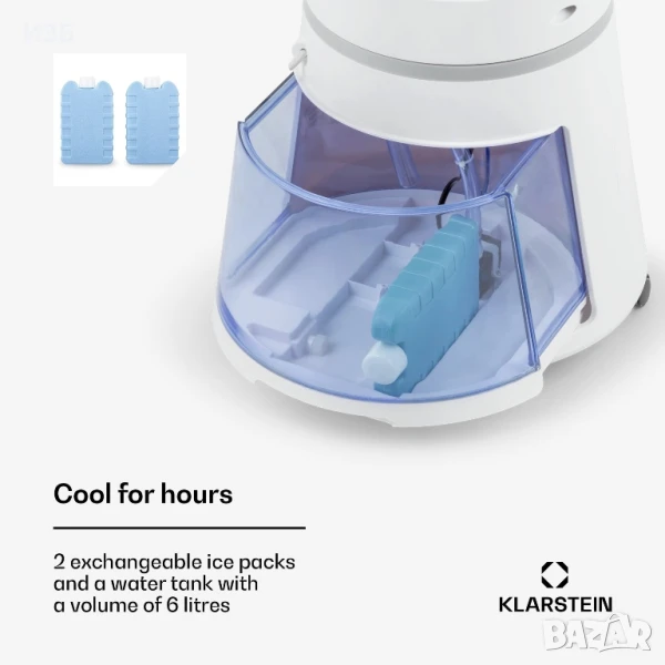 Можете да регистрирате изключително интелигентния Skyscraper Ice Smart в домашната си WiFi мрежа и след това да го управлявате удобно отвсякъде чрез приложението Klarstein. С голям въздушен поток от 210 м³/ч вентилаторът Klarstein Skyscraper Ice Smart раздвижва бавния летен въздух и създава приятен бриз с три различни скорости. В комбинация с функцията за охлаждане на въздуха на въздушната струя също се охлажда приятно чрез изпаряване на вода и осигурява освежаване с точност до градус. Това прави Klarstein Skyscraper Ice Smart желан помощник не само през лятото: като овлажнител той се бори със сухия отоплен въздух през зимата. Вертикалната и хоризонталната осцилация осигуряват разпределение на въздуха в помещението. Вграденият йонизатор ефективно премахва праховите частици и миризмите от въздуха.
