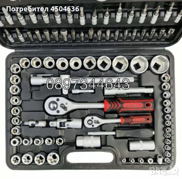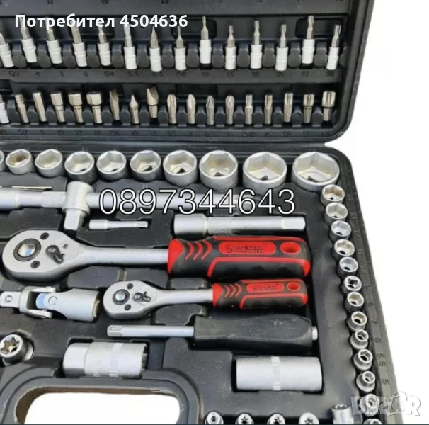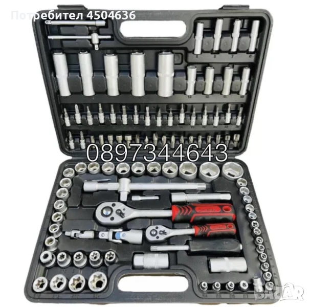 Тресчокта 1/2'' - тресчотка 1/4'' - 2 броя удължители 1/2'' : 125мм и 250мм - 2 броя удължители 1/4'' : 50мм и 75мм - върток 1/4'' 150мм - върток 1/4'' Т образен 100мм - подвижна свръзка / кардан за гедоре 1/4'' - подвижна свръзка / кардан за гедоре 1/2'' - Комбиниран адаптер 3/8'' - 1/2'' - вложка за накрайници 1/2'' - 13 броя вложки 1/4'' къси: 4мм; 4.5мм; 5мм; 5.5мм; 6мм; 7мм; 8мм; 9мм; 10мм; 11мм; 12мм; 13мм; 14мм - 8 броя вложки 1/4'' дълги: 6мм; 7мм; 8мм; 9мм; 10мм; 11мм; 12мм; 13мм - 5 броя вложки е-торкс /е- torx(женски торкс) 1/4'' : E4; E5; E6; E7; E8 - 4 броя вложки кръстата отвертка 1/4'' : PH1; PH2; PZ1; PZ2 - 3 броя вложки плоска отвертка 1/4'' : 4мм; 5.5мм; 6.5мм - 7 броя вложки торкс / torx 1/4'' :Т8; Т10; Т15; Т20; Т25; Т27; Т30 - 4 вложки шестограм 1/4'': 3мм; 4мм; 5мм; 6мм - 17 броя вложки 1/2'' къси: 10мм; 11мм; 12мм; 13мм; 14мм; 15мм; 16мм; 17мм; 18мм; 19мм; 20мм; 21мм; 22мм; 24мм; 27мм; 30мм; 32мм - 5 броя вложки 1/2'' дълги: 14мм; 15мм; 17мм; 19мм; 22мм -8 броя вложки е-торкс /е- torx(женски торкс) 1/2'': E10; E11; E12; E14; E16; Е18; Е20; Е24 - 2 броя вложки за свещи 1/2'' :16.0мм и 21.0мм - 4 броя накрайници кръстата отвертка: PH3; PH4; PZ3; PZ4 - 3 броя накрайници плоска отвертка: 8мм; 10мм; 12мм - 5 броя накрайници шестограм: 7мм; 8мм; 10мм; 12мм; 14мм - 5 броя накрайници торкс / torx: Т40; Т45; Т50; Т55; T60 - 3 броя Г образни шестограми: 1.5мм; 2мм; 2,5мм