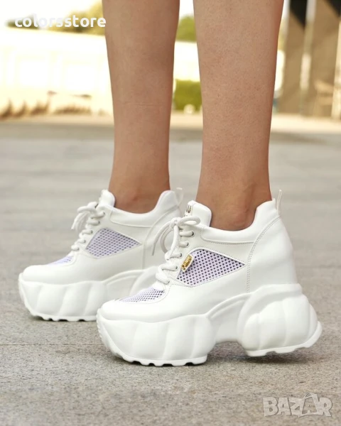 Кецове на платформа - бяла кожа и мрежа - PA700