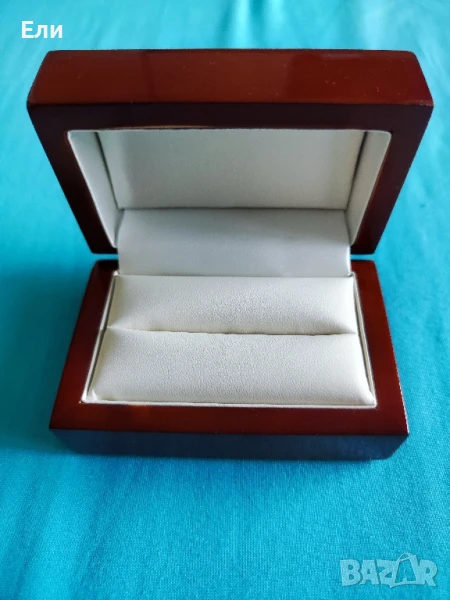 Кутията е дървена и много качествена изработка. Идеална , както за брачни халки, така и за съхранение на други пръстени.