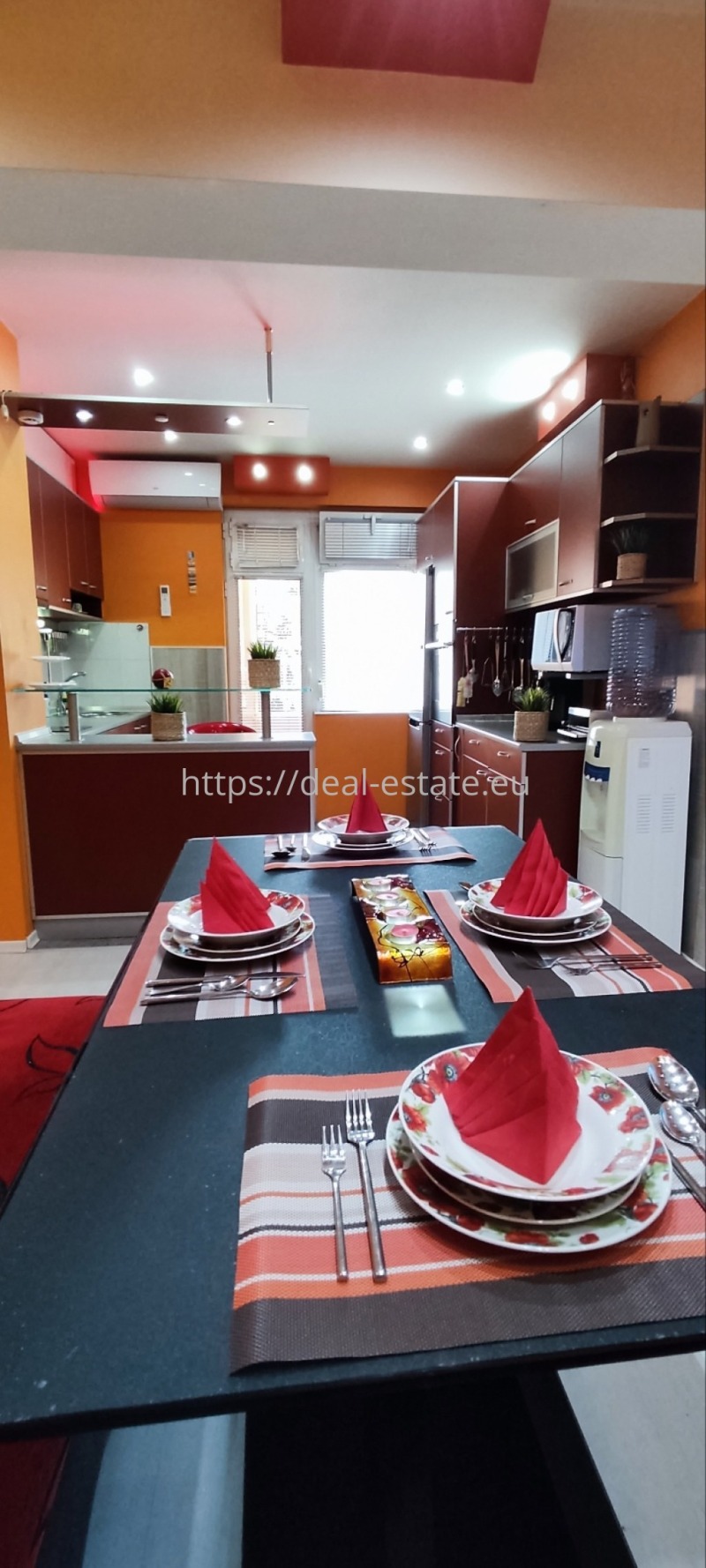 - Напълно обзаведен с висококачествени мебели и уреди - три климатика, съдомиялна, сушилня, печка, пералня и др.