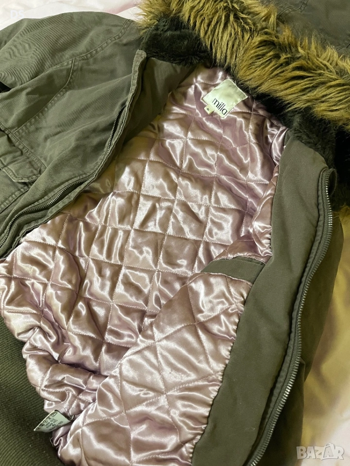 Ново Дамско зимно яке с ватирана качулка еко пух метални ципове L-XL рр -43 лв