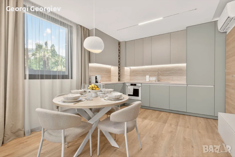 Напълно оборудвана кухня с всичко необходимо - кафе машина, съдомиялна, пералня, фурна, котлони, прибори