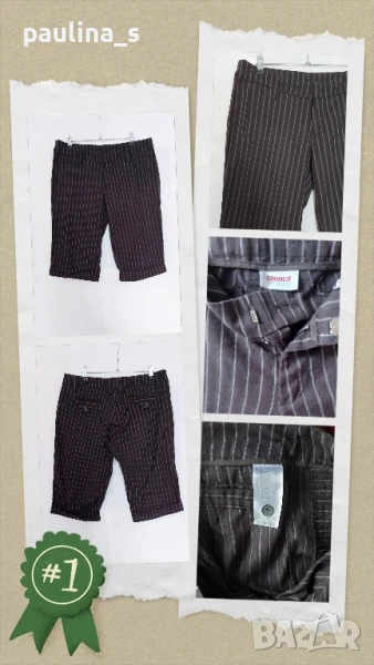 2️⃣. Колаж / L / 2XL - "United colours of the world by Benetton". Цената е крайна 29,99лв / 15 евро. Vintage Нови! Дамски бермуди от леко еластичен летен плат - полиестер и памук. Моделът е с прави крачоли и леко ниска талия. Джобовете не са ефективни, само на филетки и капаци отзад, резервно копче. Перфектна изработка. Гайките са широки, може да носи колан за ханш, долу крачолите завършват с маншети. Може се носи до 44EU.