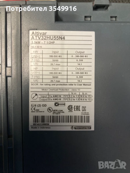 Честотен регулатор(инвертор) Altivar 32 5,5кw 400V AC, снимка 1 - Други машини и части - 50971986 Честотен регулатор(инвертор) Altivar 32 5,5кw 400V AC, снимка 2 - Други машини и части - 50971986 Честотен регулатор(инвертор) Altivar 32 5,5кw 400V AC, снимка 3 - Други машини и части - 50971986 Честотен регулатор(инвертор) Altivar 32 5,5кw 400V AC, снимка 4 - Други машини и части - 50971986 1/4
