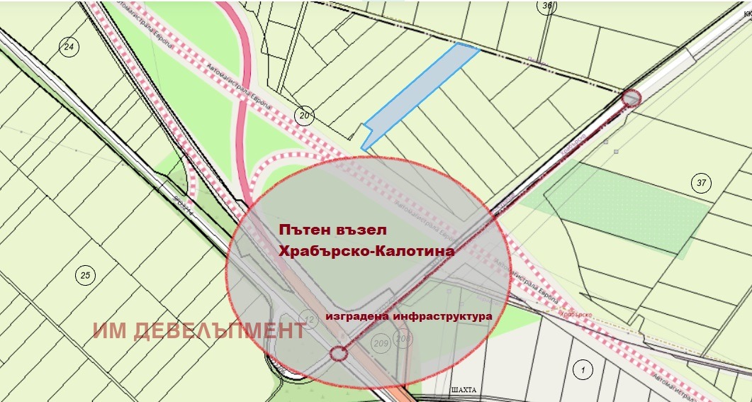 'Иванов и Милев' продават инвестиционен парцел, подходящ за бъдещо жилищно или промишлено строителство, находящ се в близост до с. ХРАБЪРСКО и детелината на АМ Европа