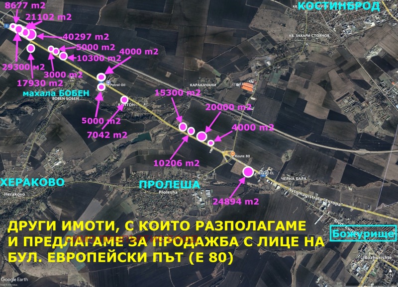 АГЕНЦИЯТА НИ РАЗПОЛАГА И С МНОГО ДРУГИ ИМОТИ с различна квадратура В СЪЩИЯ РАЙОН ВСИЧКИ, КОИТО СА С ЛИЦЕ НА ПЪТЯ Е80 - БУЛ. ЕВРОПЕЙСКИ ПЪТ, ПО НЕГОВОТО ПРОТЕЖЕНИЕ ОТ РАЙОНА НА С. ХЕРАКОВО ДО ГР. БОЖУРИЩЕ ВКЛЮЧИТЕЛНО!!!